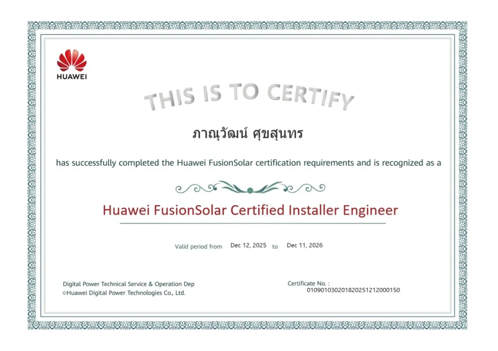 - ทีมงานมีใบอนุญาตวิศวกรรมควบคุม และผ่านการรับรองจาก กฟภ./กฟน.